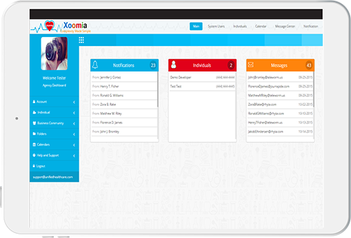Xoomia is a unified healthcare system that allow Caregivers, Home Health Agencies, Doctor Office, clinics, Government, etc...to securely manage and share individual/patient health information. Xoomia is HIPPA compliant and can be access anywhere, anytime. Xoomia is affordable and don't require set up fees, hardware ,or in house tech support.